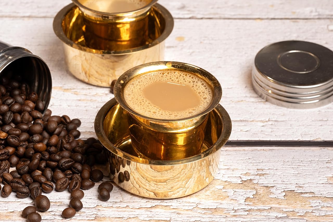 Filter coffee, known for its smooth and rich flavor, is brewed by slowly passing hot water through ground coffee.